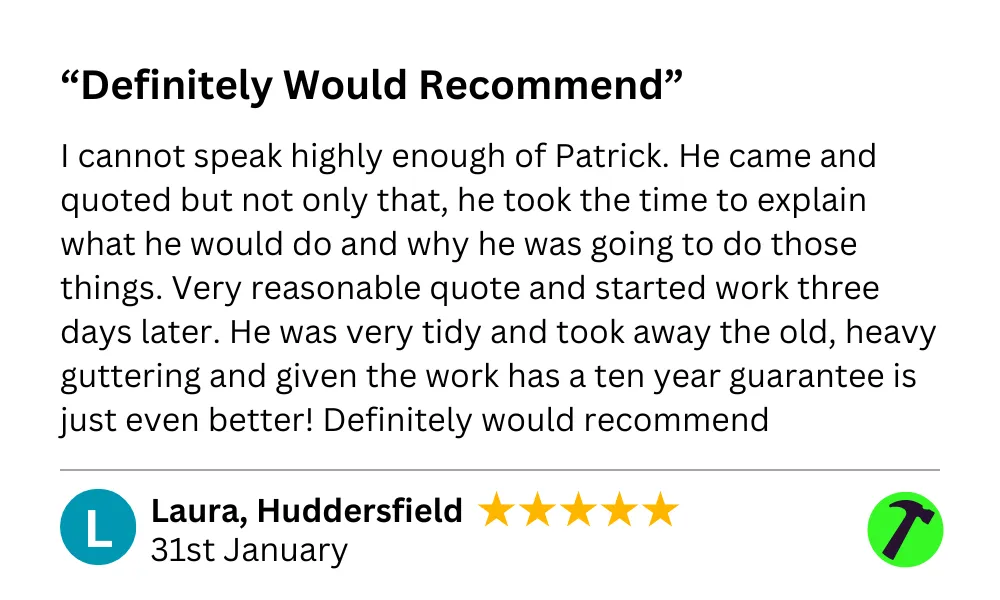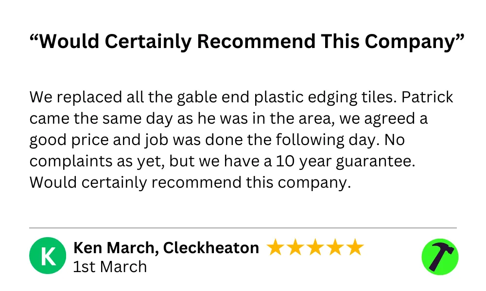 "Hi I'm Patrick and I've been roofing in Leeds for over a decade. I started this business with one goal - to give homeowners a straight, honest service without the hard sell or hidden costs.